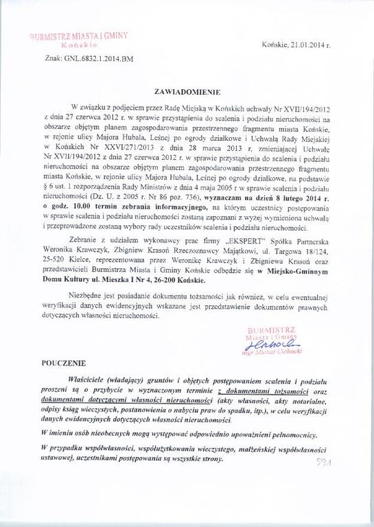 23 stycznia 2014 09:34 (Jacek Muszyński) - Dodanie zdjęcia [zawiadomienie.jpg] do dokumentu. (Dokument opublikowany)